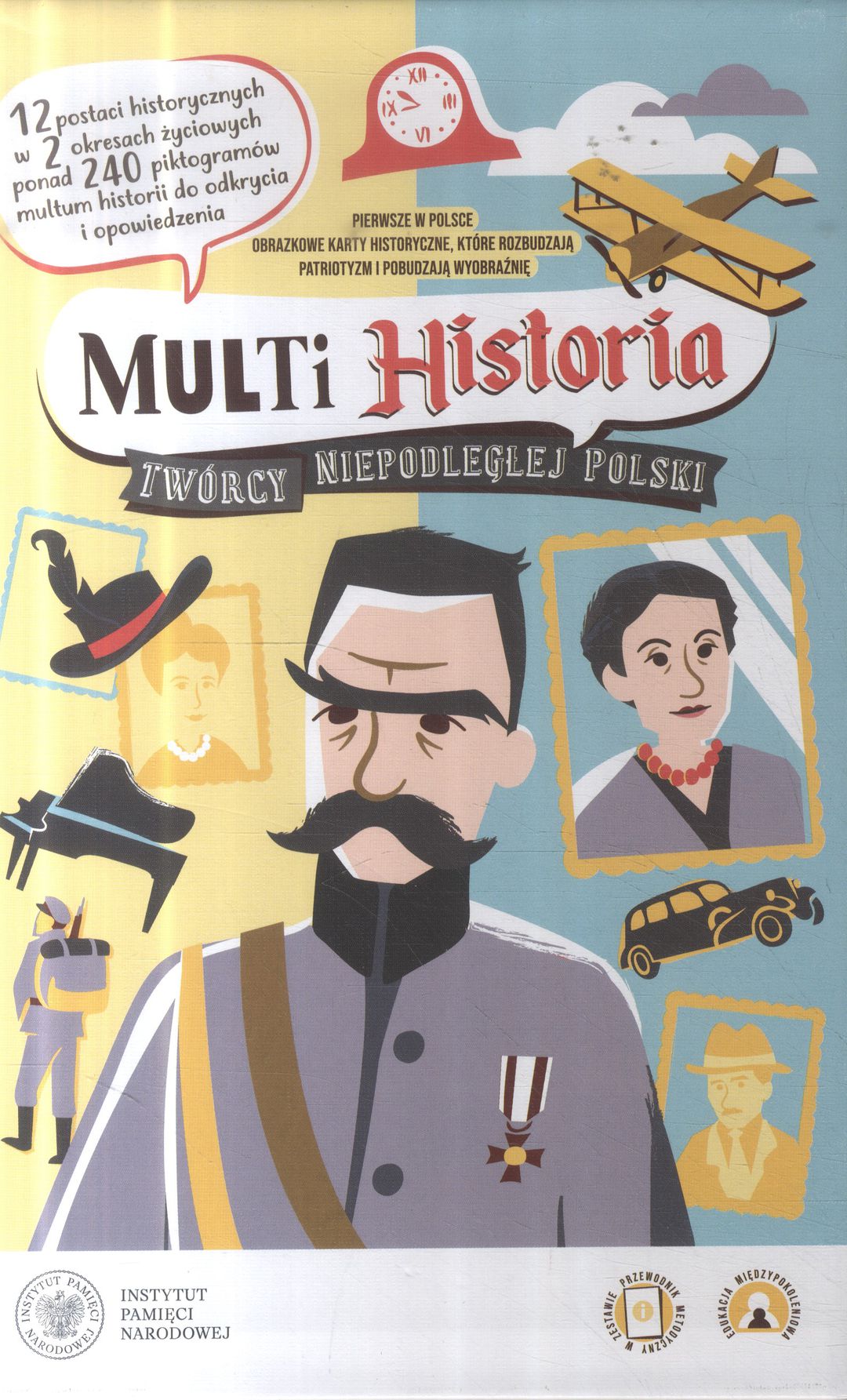 Multihistoria : twórcy niepodległej Polski / tekst Justyna Kesler. - Warszawa : Instytut Pamięci Narodowej : Multi-Talk, cpyright 2023. - 1 gra (110 kart, 12 dwustronnych plansz) : karton, tektura, kolor ; w pudełku 23x15x6 cm + instrukcja (79, [1] strona : ilustracje ; 21 cm).