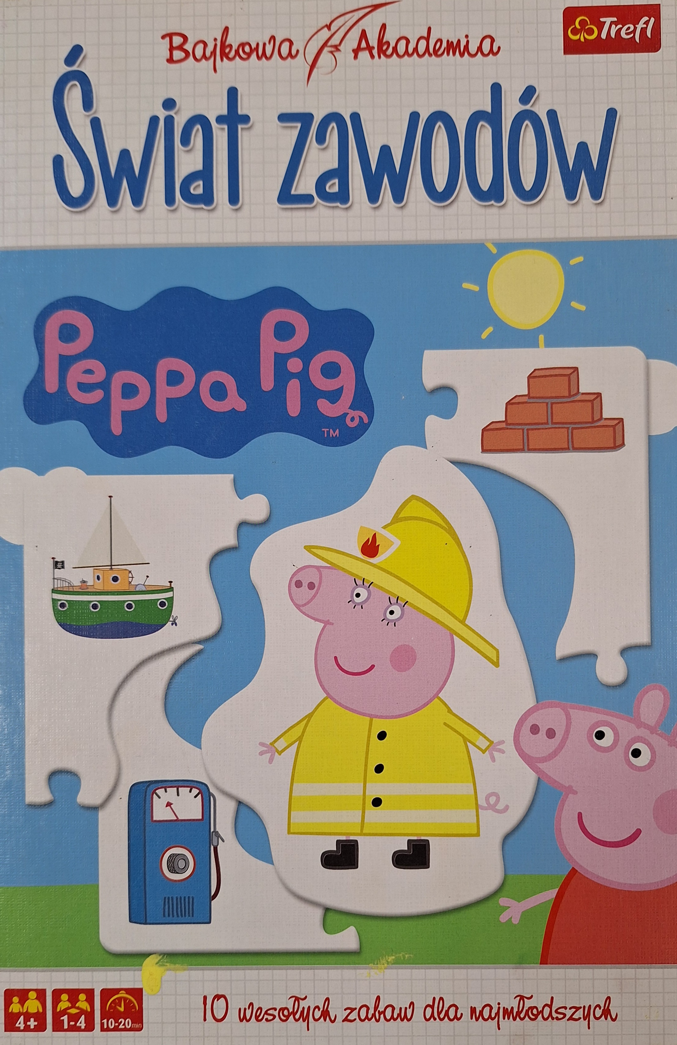 Świat zawodów : 10 wesołych zabaw dla majmłodszych / autor gry Monika Rutkowska ; opracowanie graficzne Adam Strzelecki. - Gdynia : TREFL SA, [2020]. - 8 gier (40 elementów) : tektura kolorowa ; w pudełku 19x29x4 cm + instrukcja.