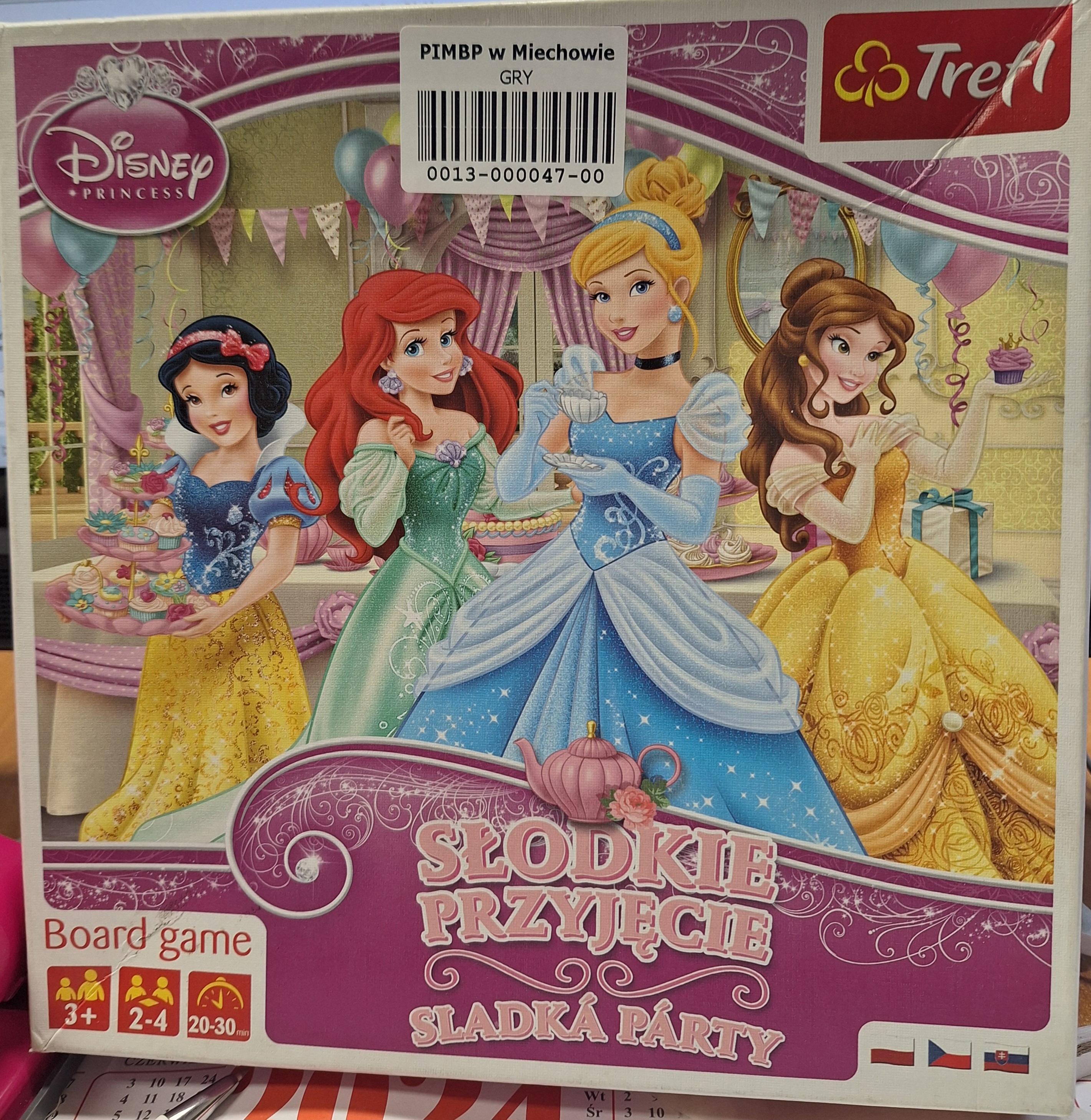 Słodkie przyjęcie = Sladka párty - Gdynia: Trefl SA, [2020]. - 1 gra (plansza przestrzenna, 4 pionki, instrukcja): tektura, plastik, kolor ; w pudełku 24x24x5 cm.