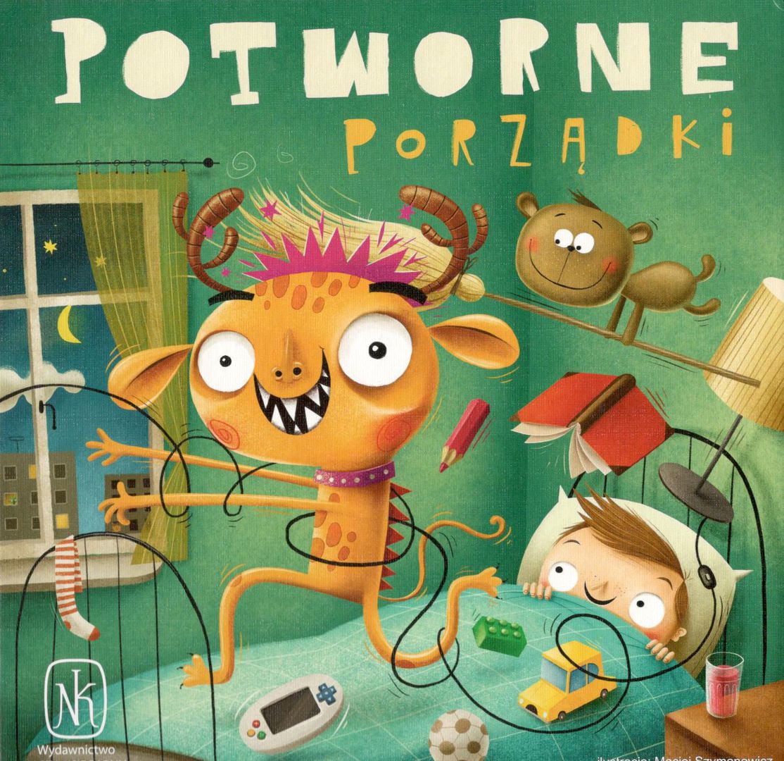 Potworne porządki / ilustracje Maciej Szymanowicz ; projekt graficzny Paweł Nowicki. - Warszawa : Wydawnictwo "Nasza Księgarnia", copyright 2018. - 1 gra (4 plansze, 8 potworków, 16 przedmiotów w 4 kolorach, płócienny woreczek) : plastik, karton, tektura, kolor ; w pudełku 5x20x20 cm + instrukcja (3, [1] strona : ilustracje ; 19 cm).